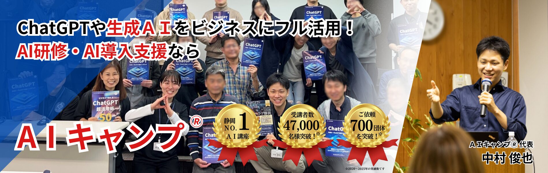 - 橋本組CEO橋本社長「静岡経済同友会で3日間のAI研修を行っていただきました。この世界に自分を引き入れていただいたAIの伝道師としての中村先生には、感謝の言葉しかありません。研修の成果は想像以上で、わが社の社員達の生産性は爆上がりです」(2024年12月AIキャンプ通常講座受講)